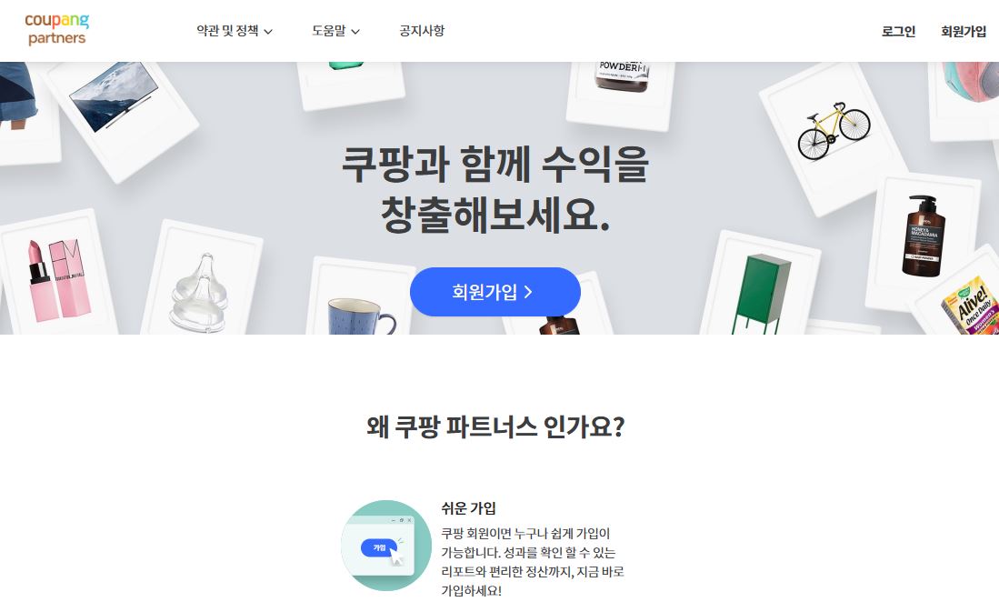 쿠팡파트너스는 상품 링크를 통해 유입된 고객이 상품을 구입하면 수익의 3%를 지급하는 방식으로 수익을 낼 수 있는데